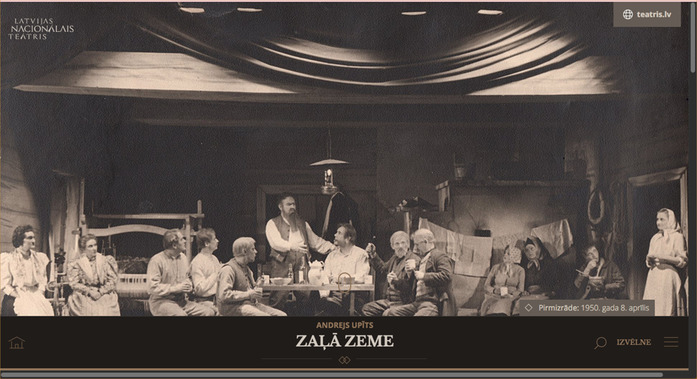 Autors nezināms. (1950) Skats no izrādes „Zaļā zeme”. [Fotogrāfija] Latvijas Nacionālā teātra krājums.