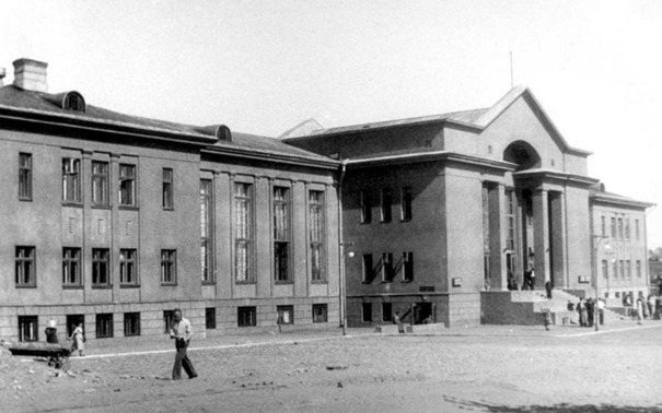 Autors nezināms. (1951) Atjaunotā Daugavpils dzelzceļa stacija. [Fotogrāfija] Latvijas Dzelzceļa muzeja krājums.