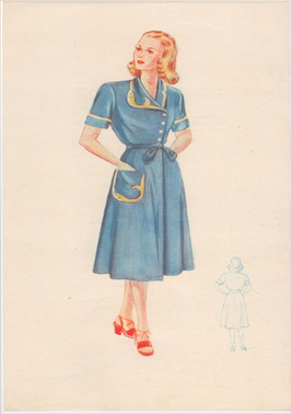 Autors nezināms. Modes žurnāla „Rīgas Modes” atvērums ar modeļa piemēru. Rīgas Modes, Nr. 7 (1954),13. lpp.