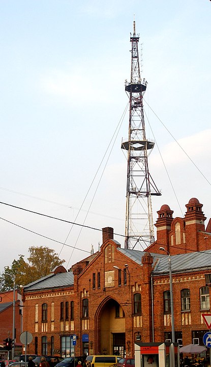 ScAvenger (2007) Āgenskalna vecais televīzijas tornis ar Āgenskalna tirgu priekšplānā. [Fotogrāfija].