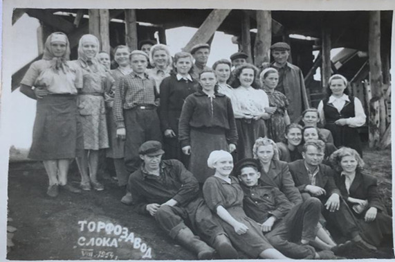 Autors nezināms. (1954) Slokas Kūdras purva kolektīvs darbā un atpūtā. [Fotogrāfija] Kristīnes Modnikas personiskais arhīvs.