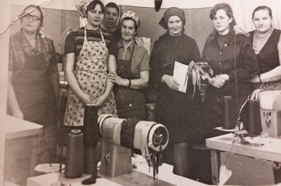 Autors nezināms. (1955) Šuvējas fabrikā „Asote” Krustpilī 20. gs. 50. gadu sākumā. [Fotogrāfija] Dzintras Priekules personiskais arhīvs.