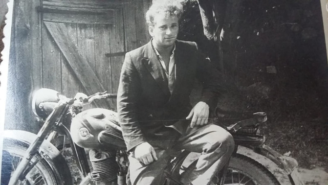 Priekule, Dz. (1958) Sensacionālais braucamrīks – motocikls IŽ-49. [Fotogrāfija] Personiskais arhīvs.