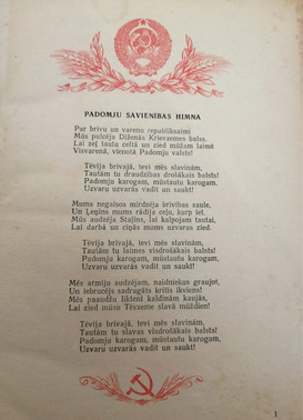Rokpelnis, F., Vanags, J., Liepiņš, A. (1954) Padomju Savienības himna. [Iespiests teksts] Salas pagasta muzeja krājums.